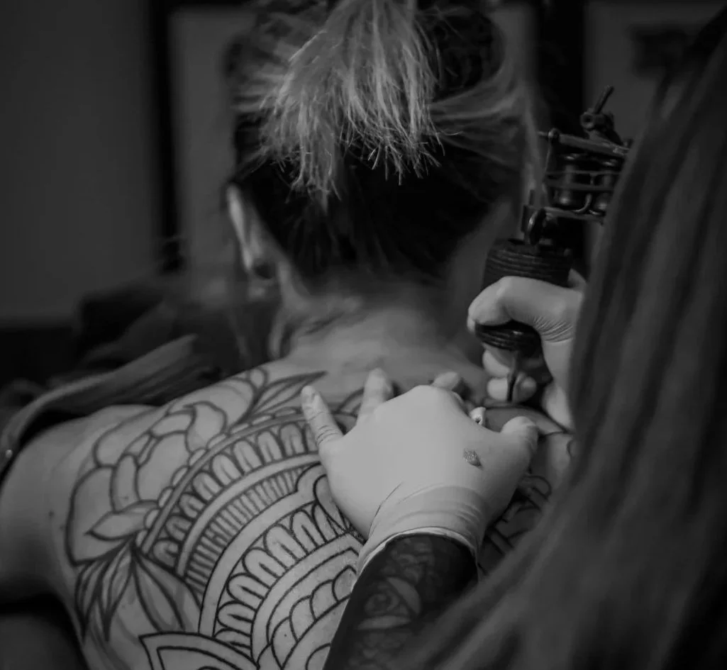 My name is Morgan Gatekeeper and I’m a tattooer at Dame of the West Tattoo right here in the heart of Old Town Scottsdale. I’ve been tattooing for over a decade, specializing primarily in geometric & ornamental styles of tattooing. I’ve had the pleasure of spending the past 4+ years growing as an artist here at Dame of the West.